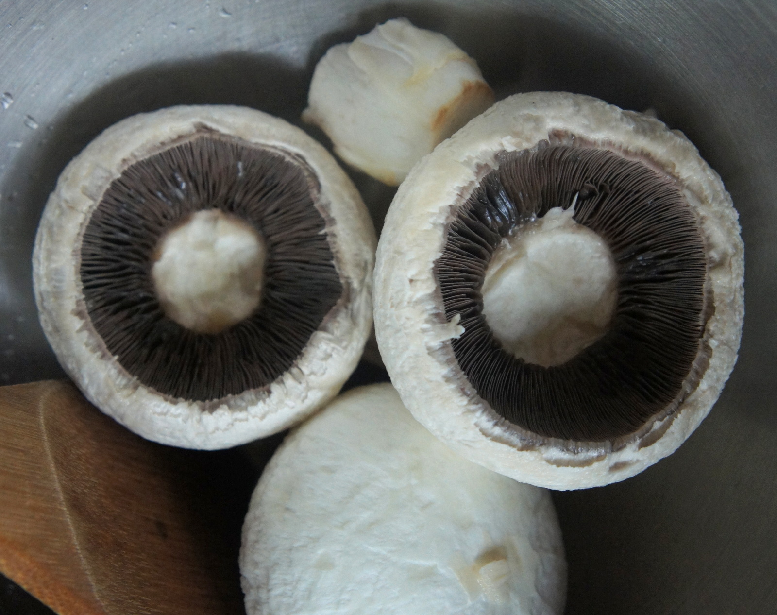 Spalati si uscati foarte repede ciupercile, desprindeti piciorul, curatati palaria ciupercii de pielita. Puneti palaria si piciorul intr-un castron cu zeama de lamaie, pentru ca ciupercile sa nu se inegreasca.